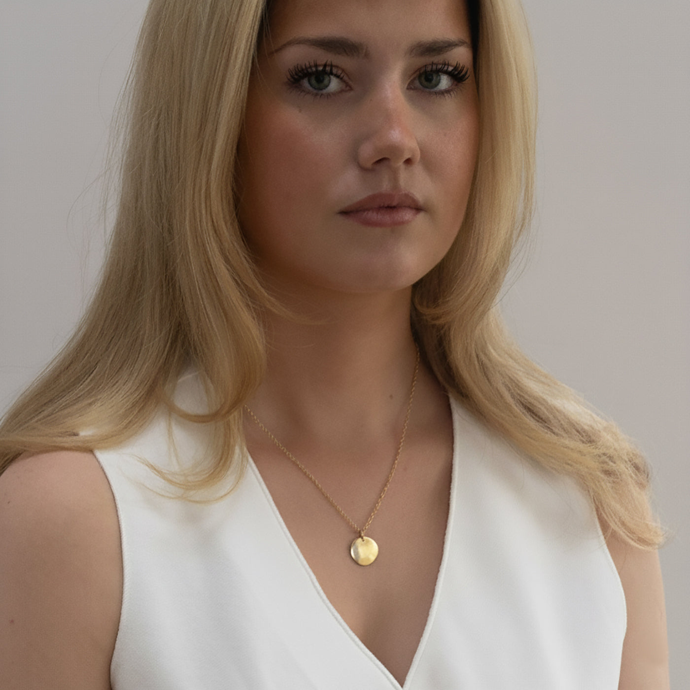 Our personalised necklace with an engraved edge is a lovely, simple necklace with a medium sized disc personalised with the names, words or dates of your choice. This necklace is perfect to mark the date of a new baby's arrival or as a bridal gift with the couples initials and the wedding date. You could also wear this as an engraved name necklace with the names of each family member on a disc.