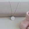 Celebrate the most precious arrival with our engraved new baby date and name necklace , a keepsake designed to capture the joy of new motherhood. This timeless pendant features a delicate engraving of tiny baby feet — a tender symbol of your little one’s first steps into the world.